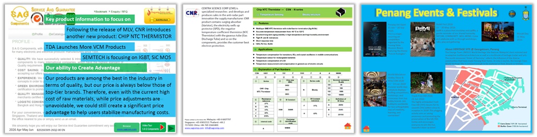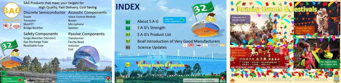 S A G Components, originated from Penang, Malaysia, branch in Kuala Lumpur, full operation in Bangkok, Thailand, GuangDong, China. Is now in Singapore, where the international companies are gathering.